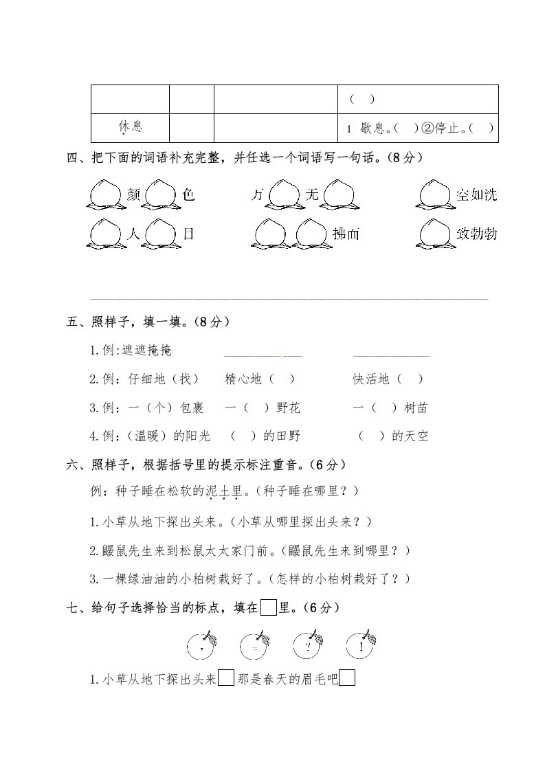 当前位置: 首页小学资源小学二年级正文 二年级语文下册试题-第一单元测试卷(附答案)人教部编版_共7页 小学二年级 1 周前 0 0 5 以上为部分内容预览,如需源文档请登录您的会员账号进行下载! 声明:本站所有文章,如无特殊说明或标注,均为本站原创发布。任何个人或组织,在未征得本站同意时,禁止复制、盗用、采集、发布本站内容到任何网站、书籍等各类媒体平台。如若本站内容侵犯了原著者的合法权益,可联系我们进行处理。 尚学资源永久会员 打赏 收藏 海报 链接