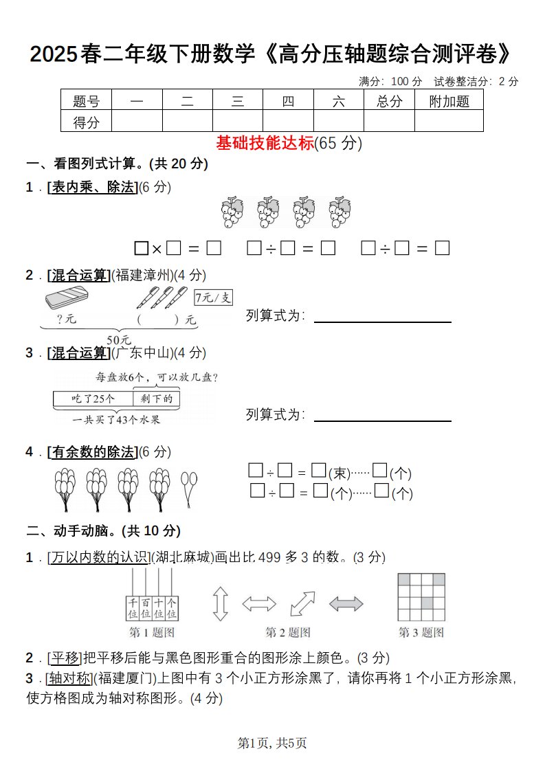 当前位置: 首页小学资源小学二年级正文 二下数学高分压轴题综合测评卷_共5页 小学二年级 1 周前 0 0 5 以上为部分内容预览,如需源文档请登录您的会员账号进行下载! 声明:本站所有文章,如无特殊说明或标注,均为本站原创发布。任何个人或组织,在未征得本站同意时,禁止复制、盗用、采集、发布本站内容到任何网站、书籍等各类媒体平台。如若本站内容侵犯了原著者的合法权益,可联系我们进行处理。 尚学资源永久会员 打赏 收藏 海报 链接