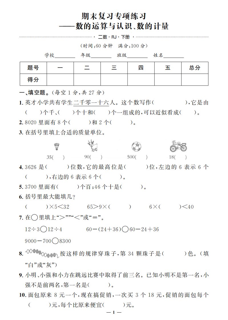当前位置: 首页小学资源小学二年级正文 二下数学人教版期末押题卷_共38页 小学二年级 1 周前 0 0 15 以上为部分内容预览,如需源文档请登录您的会员账号进行下载! 声明:本站所有文章,如无特殊说明或标注,均为本站原创发布。任何个人或组织,在未征得本站同意时,禁止复制、盗用、采集、发布本站内容到任何网站、书籍等各类媒体平台。如若本站内容侵犯了原著者的合法权益,可联系我们进行处理。 尚学资源永久会员 打赏 收藏 海报 链接