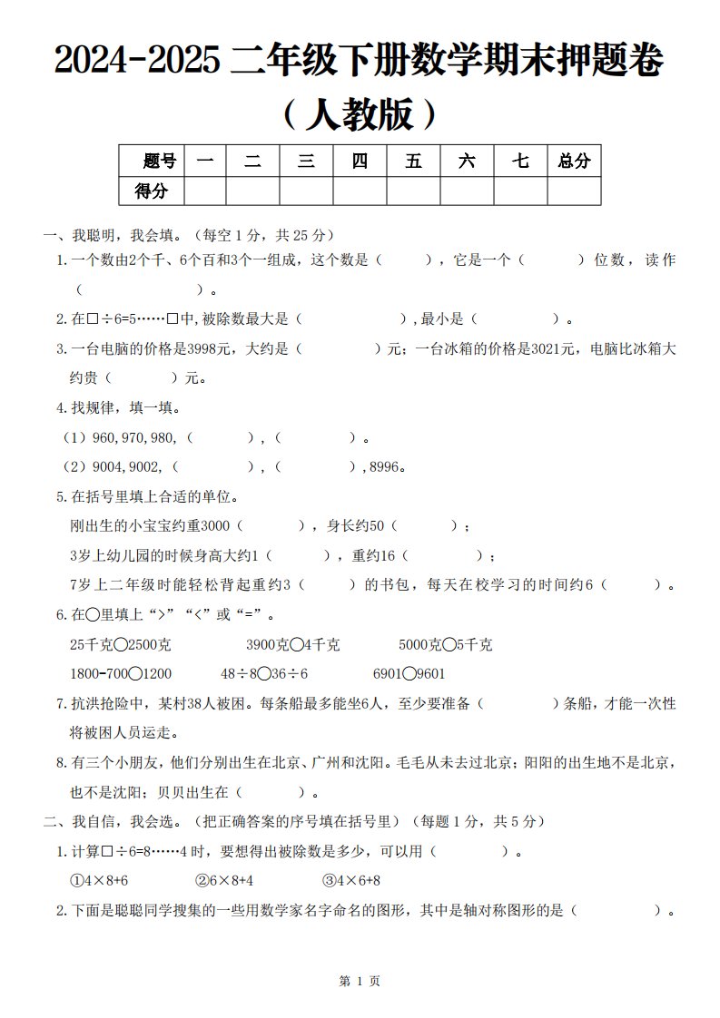 当前位置: 首页小学资源小学二年级正文 25二下数学期末押题卷(人教版)含答案6页_共6页 小学二年级 1 周前 0 0 5 以上为部分内容预览,如需源文档请登录您的会员账号进行下载! 声明:本站所有文章,如无特殊说明或标注,均为本站原创发布。任何个人或组织,在未征得本站同意时,禁止复制、盗用、采集、发布本站内容到任何网站、书籍等各类媒体平台。如若本站内容侵犯了原著者的合法权益,可联系我们进行处理。 尚学资源永久会员 打赏 收藏 海报 链接