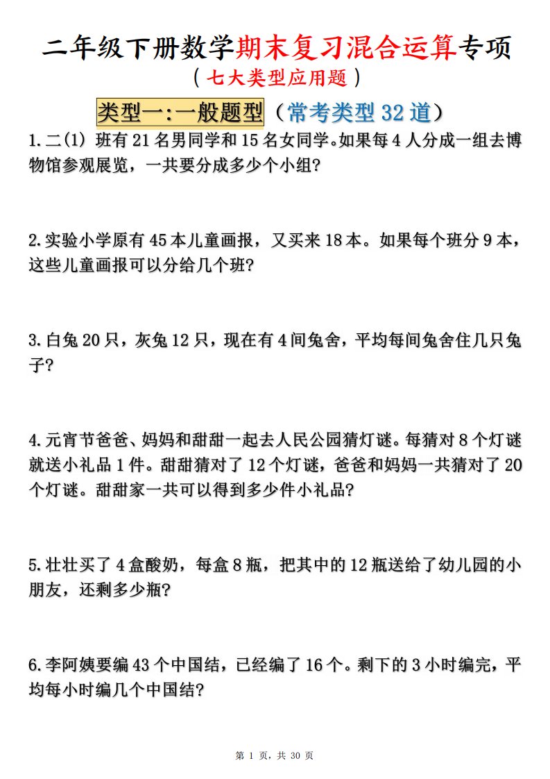 当前位置: 首页小学资源小学二年级正文 二下数学期末复习混合运算七大类型应用题(含答案30页)_共30页 小学二年级 1 周前 0 0 15 以上为部分内容预览,如需源文档请登录您的会员账号进行下载! 声明:本站所有文章,如无特殊说明或标注,均为本站原创发布。任何个人或组织,在未征得本站同意时,禁止复制、盗用、采集、发布本站内容到任何网站、书籍等各类媒体平台。如若本站内容侵犯了原著者的合法权益,可联系我们进行处理。 尚学资源永久会员 打赏 收藏 海报 链接