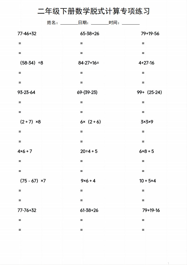 当前位置: 首页小学资源小学二年级正文 二年级下数学脱式计算专项练习_共13页 小学二年级 1 周前 0 0 10 以上为部分内容预览,如需源文档请登录您的会员账号进行下载! 声明:本站所有文章,如无特殊说明或标注,均为本站原创发布。任何个人或组织,在未征得本站同意时,禁止复制、盗用、采集、发布本站内容到任何网站、书籍等各类媒体平台。如若本站内容侵犯了原著者的合法权益,可联系我们进行处理。 尚学资源永久会员 打赏 收藏 海报 链接
