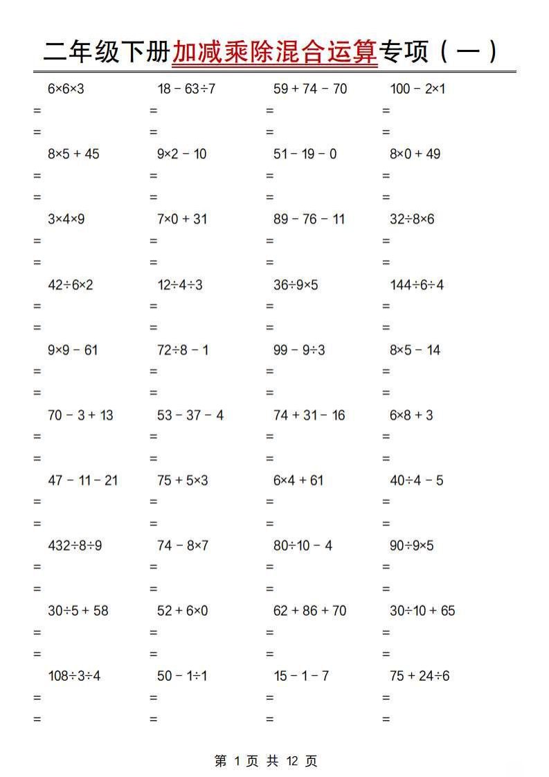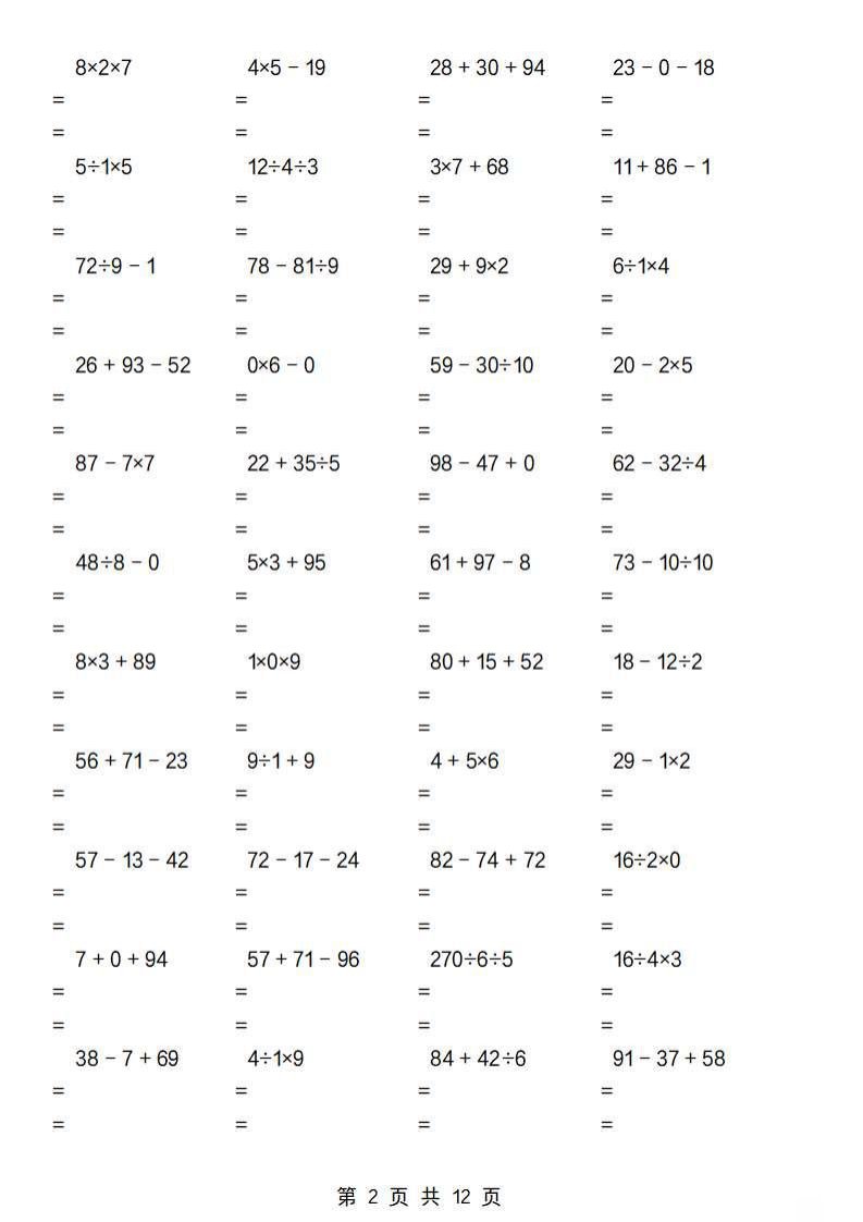 当前位置: 首页小学资源小学二年级正文 二下数学【加减乘除混合运算专项(一到四)】_共12页 小学二年级 1 周前 0 0 10 以上为部分内容预览,如需源文档请登录您的会员账号进行下载! 声明:本站所有文章,如无特殊说明或标注,均为本站原创发布。任何个人或组织,在未征得本站同意时,禁止复制、盗用、采集、发布本站内容到任何网站、书籍等各类媒体平台。如若本站内容侵犯了原著者的合法权益,可联系我们进行处理。 尚学资源永久会员 打赏 收藏 海报 链接