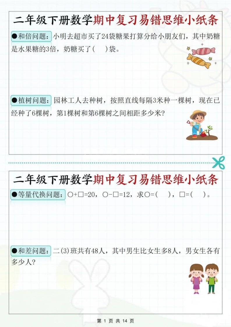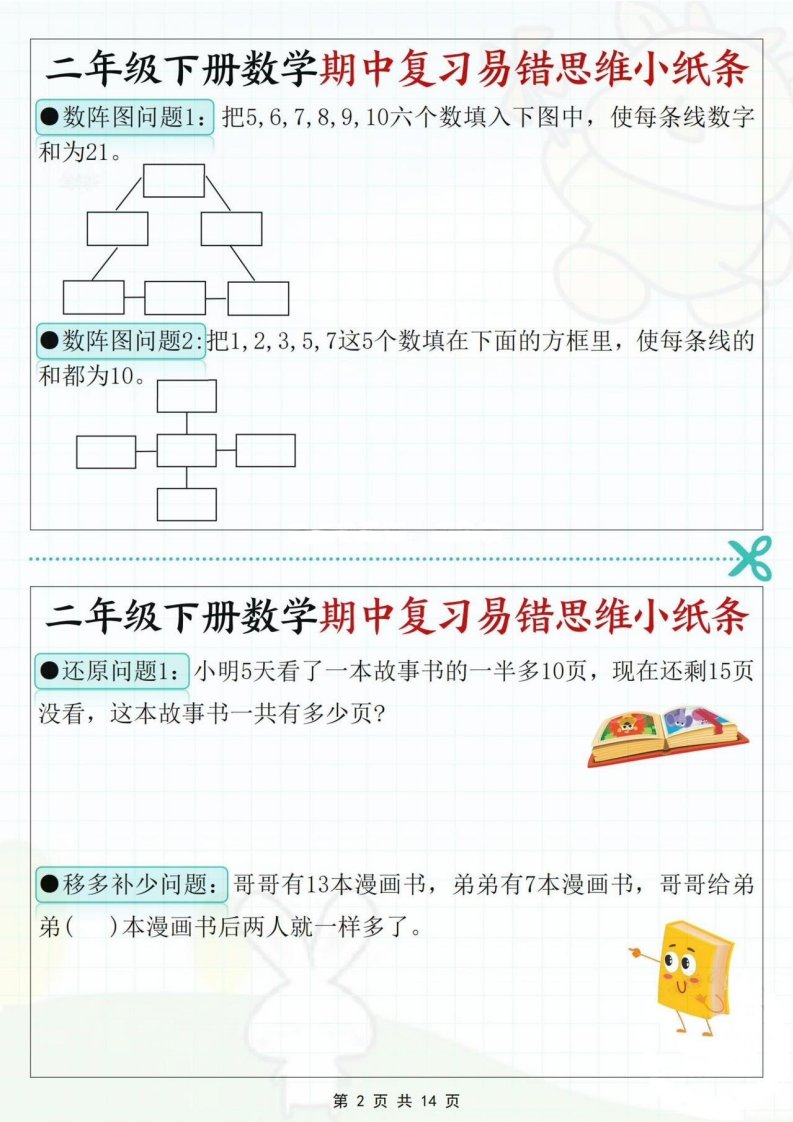 二下数学期中复习易错思维小纸条(含答案14页)_共14页