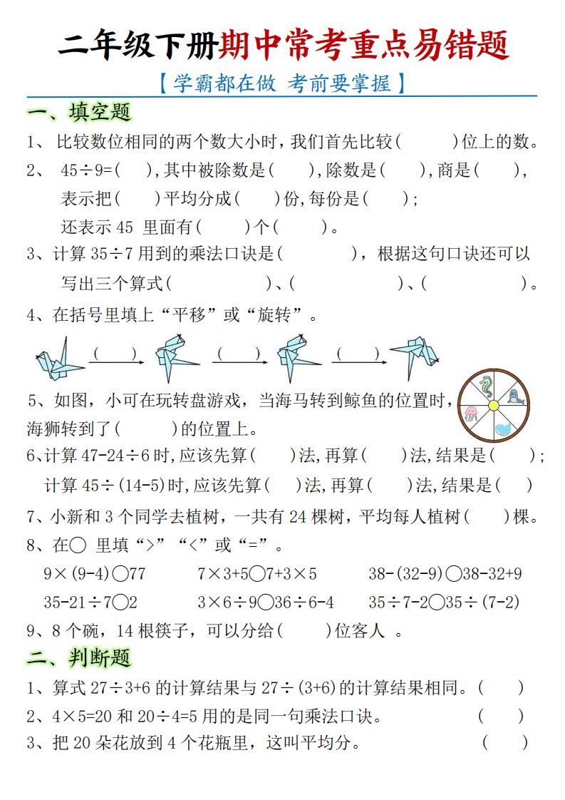 当前位置: 首页小学资源小学二年级正文 二下数学【期中常考重点易错题】含答案8页_共8页 小学二年级 1 周前 0 0 5 以上为部分内容预览,如需源文档请登录您的会员账号进行下载! 声明:本站所有文章,如无特殊说明或标注,均为本站原创发布。任何个人或组织,在未征得本站同意时,禁止复制、盗用、采集、发布本站内容到任何网站、书籍等各类媒体平台。如若本站内容侵犯了原著者的合法权益,可联系我们进行处理。 尚学资源永久会员 打赏 收藏 海报 链接
