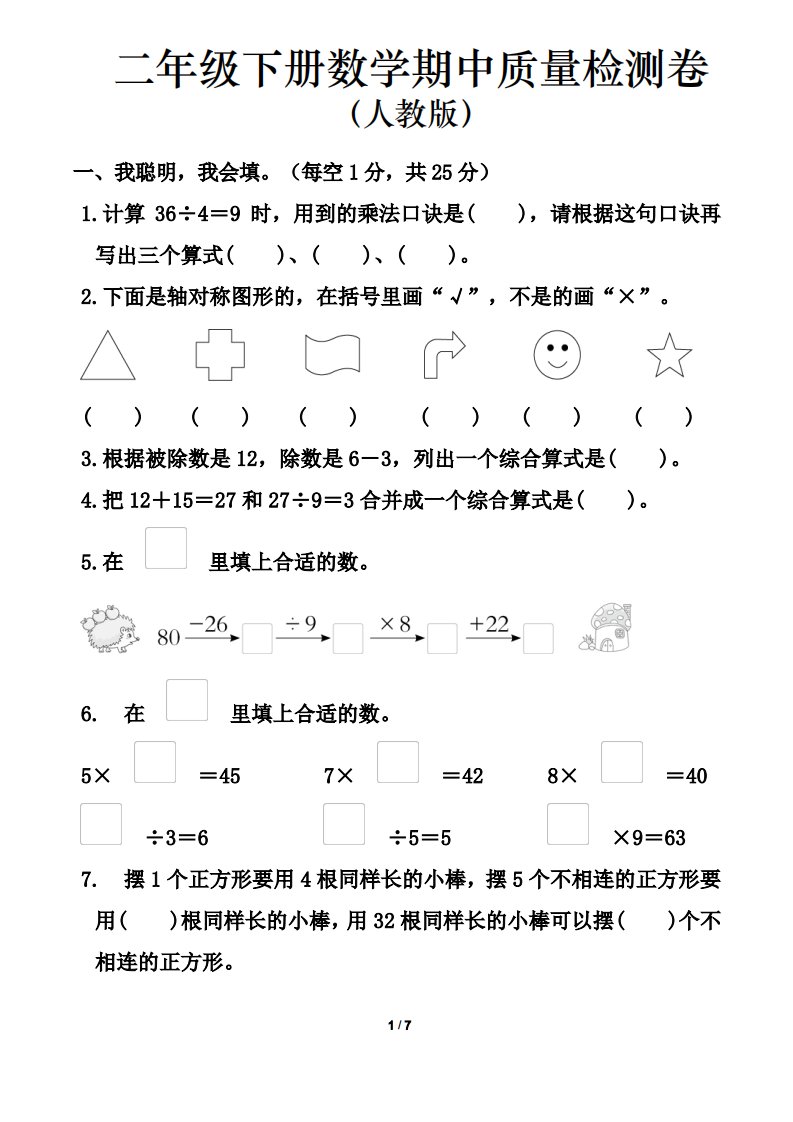 当前位置: 首页小学资源小学二年级正文 人教版二年级下册数学期中测试卷(含答案7页)_共7页 小学二年级 1 周前 0 0 5 以上为部分内容预览,如需源文档请登录您的会员账号进行下载! 声明:本站所有文章,如无特殊说明或标注,均为本站原创发布。任何个人或组织,在未征得本站同意时,禁止复制、盗用、采集、发布本站内容到任何网站、书籍等各类媒体平台。如若本站内容侵犯了原著者的合法权益,可联系我们进行处理。 尚学资源永久会员 打赏 收藏 海报 链接