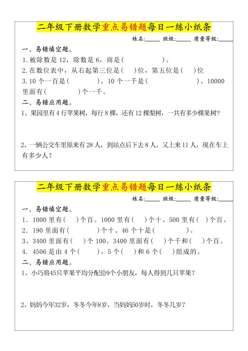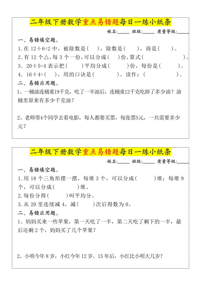 当前位置: 首页小学资源小学二年级正文 【重点易错题每日一练小纸条-无答案】二下数学-高清无水印完整版本_共5页 小学二年级 1 周前 0 0 5 以上为部分内容预览,如需源文档请登录您的会员账号进行下载! 声明:本站所有文章,如无特殊说明或标注,均为本站原创发布。任何个人或组织,在未征得本站同意时,禁止复制、盗用、采集、发布本站内容到任何网站、书籍等各类媒体平台。如若本站内容侵犯了原著者的合法权益,可联系我们进行处理。 尚学资源永久会员 打赏 收藏 海报 链接