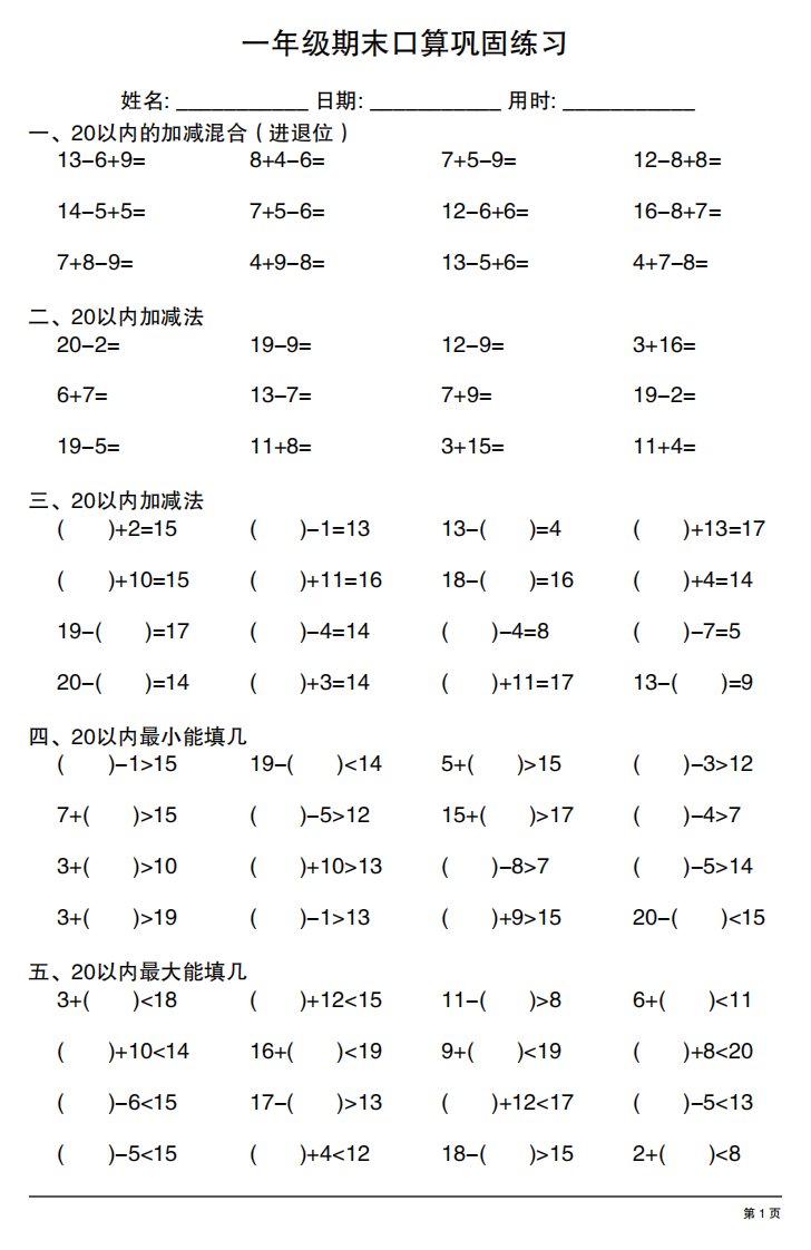 当前位置: 首页小学资源小学一年级正文 一年级上册数学期末口算巩固练习_共20页 小学一年级 2 周前 0 0 10 以上为部分内容预览,如需源文档请登录您的会员账号进行下载! 声明:本站所有文章,如无特殊说明或标注,均为本站原创发布。任何个人或组织,在未征得本站同意时,禁止复制、盗用、采集、发布本站内容到任何网站、书籍等各类媒体平台。如若本站内容侵犯了原著者的合法权益,可联系我们进行处理。 尚学资源永久会员 打赏 收藏 海报 链接