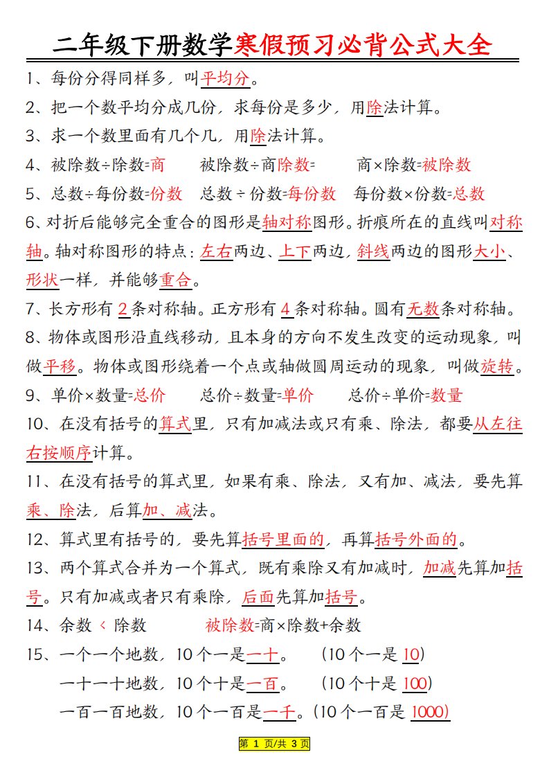 当前位置: 首页小学资源小学二年级正文 二年级数学下册必背公式大全_共3页 小学二年级 1 周前 0 0 5 以上为部分内容预览,如需源文档请登录您的会员账号进行下载! 声明:本站所有文章,如无特殊说明或标注,均为本站原创发布。任何个人或组织,在未征得本站同意时,禁止复制、盗用、采集、发布本站内容到任何网站、书籍等各类媒体平台。如若本站内容侵犯了原著者的合法权益,可联系我们进行处理。 尚学资源永久会员 打赏 收藏 海报 链接