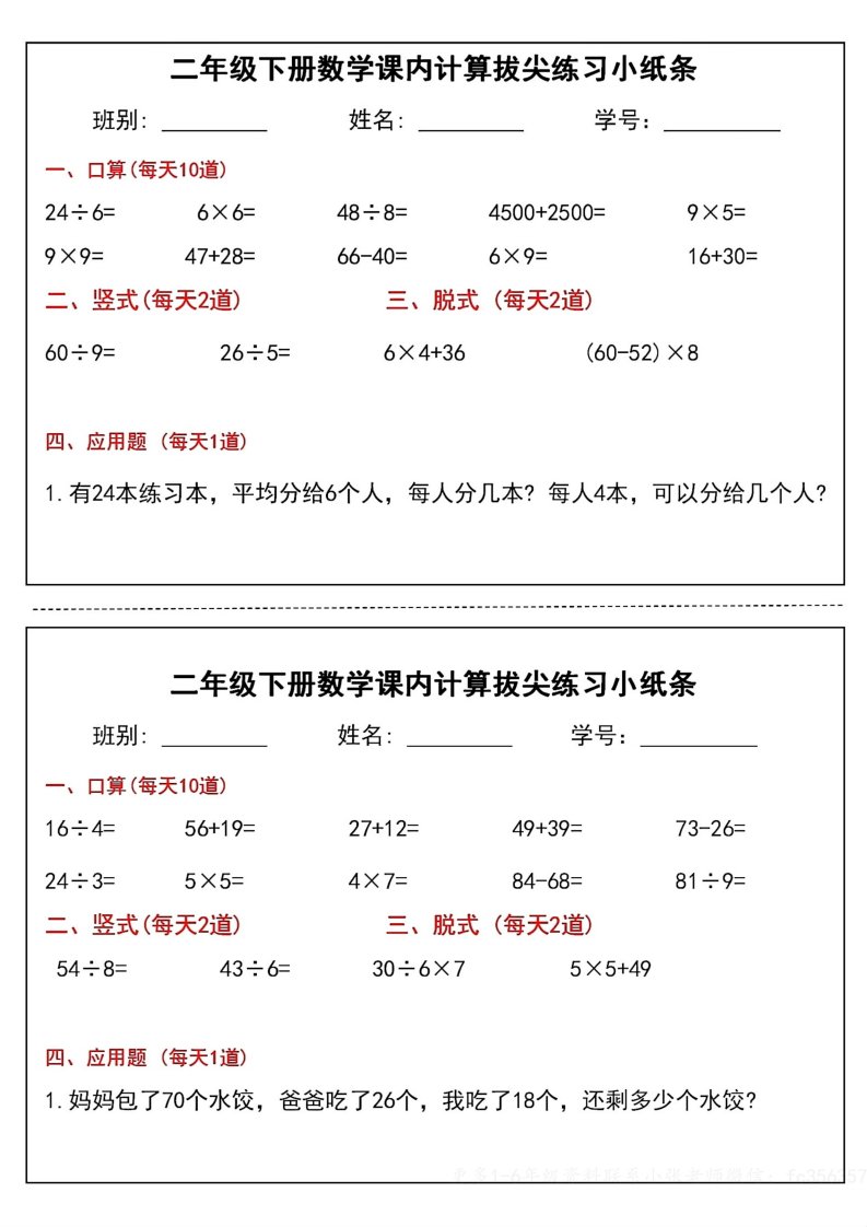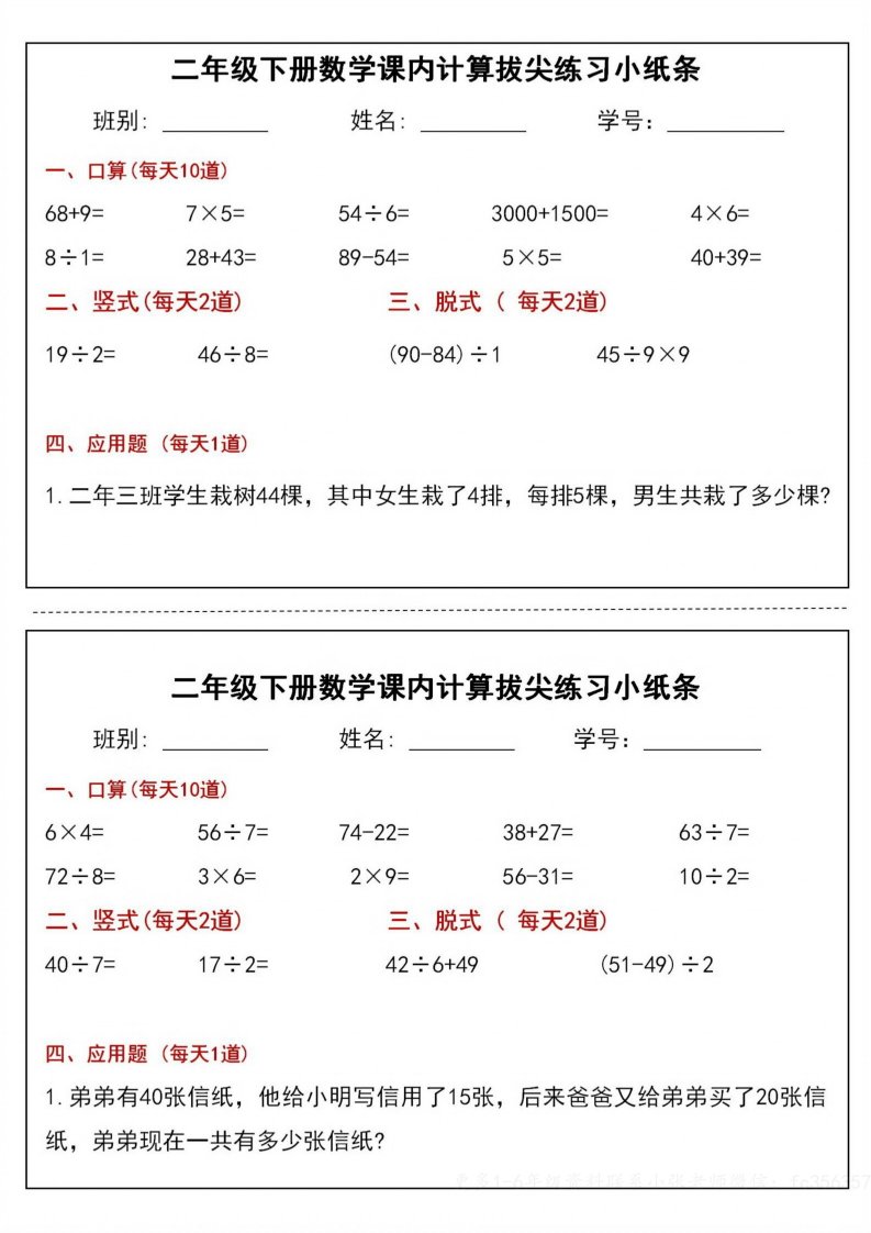 当前位置: 首页小学资源小学二年级正文 二下数学课内计算拔尖练习小纸条(15页30条)-高清无水印完整版本_共15页 小学二年级 1 周前 0 0 10 以上为部分内容预览,如需源文档请登录您的会员账号进行下载! 声明:本站所有文章,如无特殊说明或标注,均为本站原创发布。任何个人或组织,在未征得本站同意时,禁止复制、盗用、采集、发布本站内容到任何网站、书籍等各类媒体平台。如若本站内容侵犯了原著者的合法权益,可联系我们进行处理。 尚学资源永久会员 打赏 收藏 海报 链接