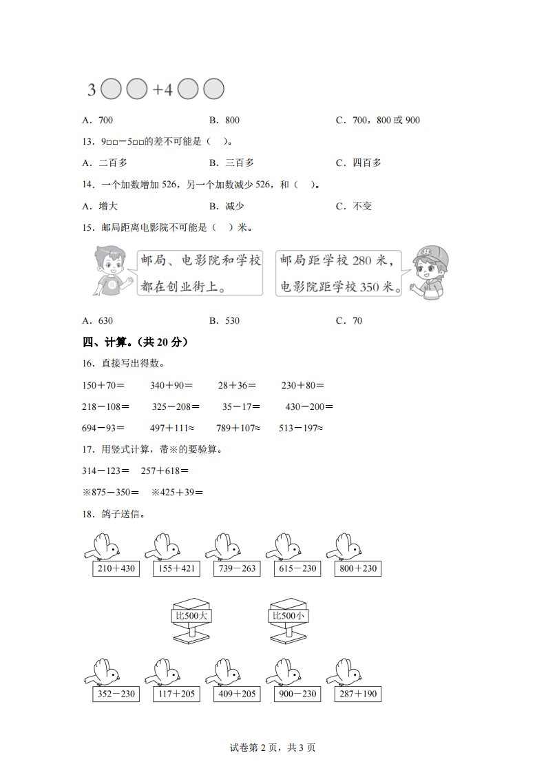 青岛63版数学二年级下册第四单元《万以内的加减法(一)》单元测试卷_共11页