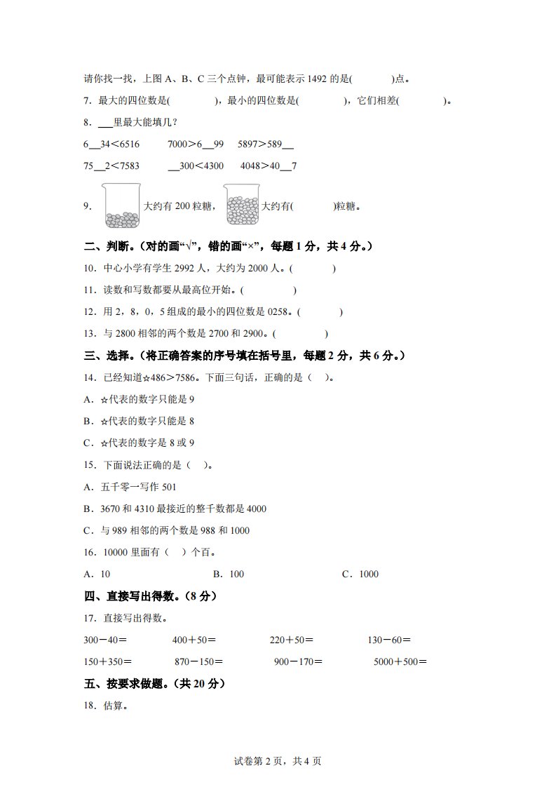 当前位置: 首页小学资源小学二年级正文 青岛63版数学二年级下册第二单元《万以内的认识》单元测试卷_共12页 小学二年级 1 周前 0 0 10 以上为部分内容预览,如需源文档请登录您的会员账号进行下载! 声明:本站所有文章,如无特殊说明或标注,均为本站原创发布。任何个人或组织,在未征得本站同意时,禁止复制、盗用、采集、发布本站内容到任何网站、书籍等各类媒体平台。如若本站内容侵犯了原著者的合法权益,可联系我们进行处理。 尚学资源永久会员 打赏 收藏 海报 链接