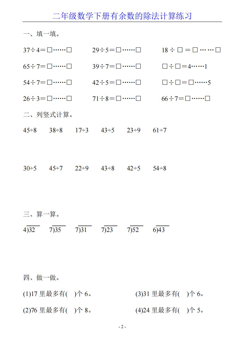 当前位置: 首页小学资源小学二年级正文 二下数学有余数的除法计算20套_共20页 小学二年级 1 周前 0 0 10 以上为部分内容预览,如需源文档请登录您的会员账号进行下载! 声明:本站所有文章,如无特殊说明或标注,均为本站原创发布。任何个人或组织,在未征得本站同意时,禁止复制、盗用、采集、发布本站内容到任何网站、书籍等各类媒体平台。如若本站内容侵犯了原著者的合法权益,可联系我们进行处理。 尚学资源永久会员 打赏 收藏 海报 链接