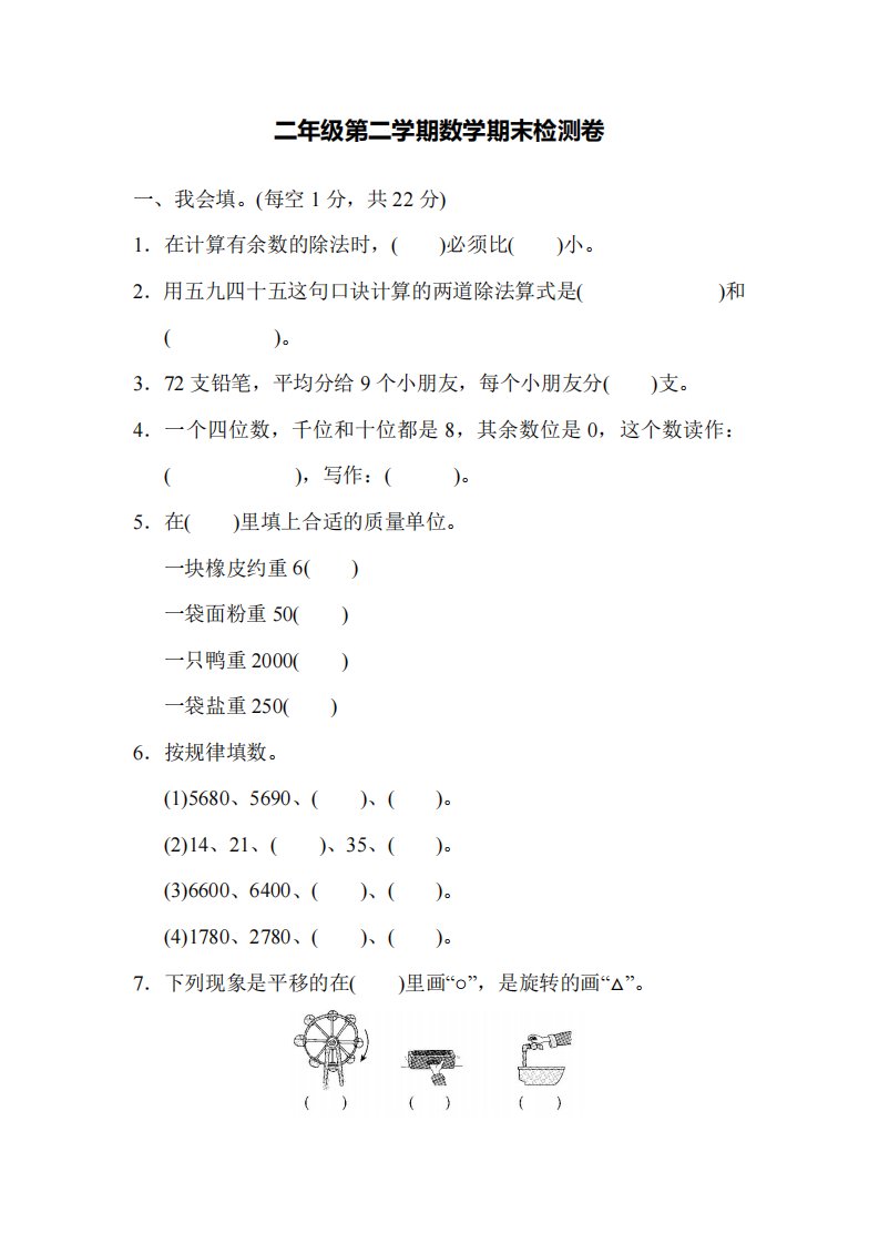 当前位置: 首页小学资源小学二年级正文 二下人教版数学名校期末试卷4_共7页 小学二年级 1 周前 0 0 5 以上为部分内容预览,如需源文档请登录您的会员账号进行下载! 声明:本站所有文章,如无特殊说明或标注,均为本站原创发布。任何个人或组织,在未征得本站同意时,禁止复制、盗用、采集、发布本站内容到任何网站、书籍等各类媒体平台。如若本站内容侵犯了原著者的合法权益,可联系我们进行处理。 尚学资源永久会员 打赏 收藏 海报 链接