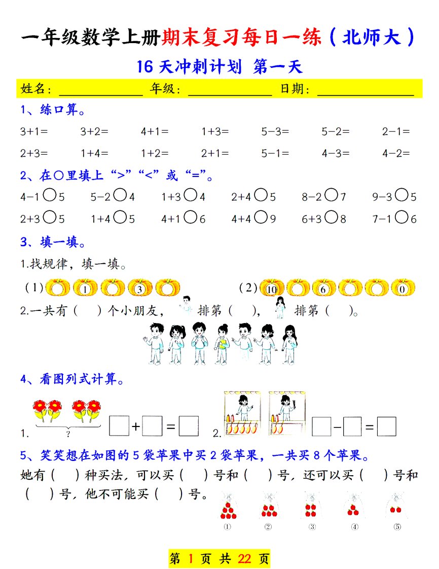 24年(北师大)一上数学期末复习每日一练_共22页