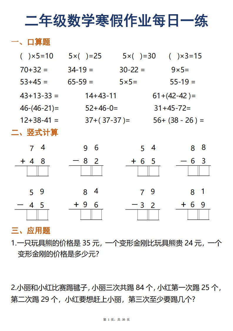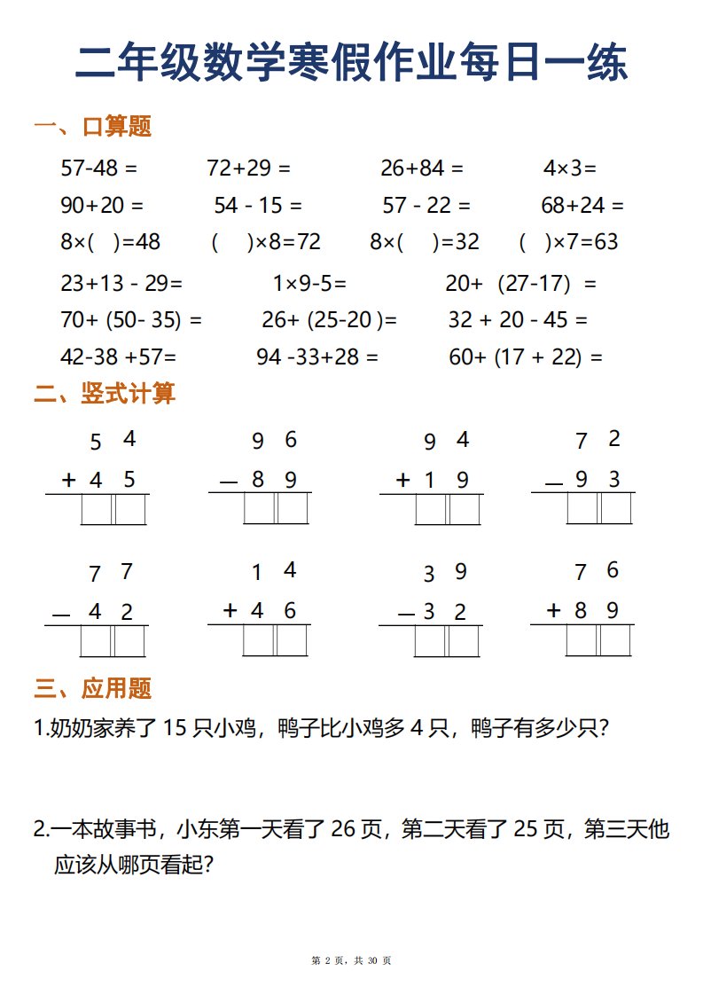 当前位置: 首页小学资源小学二年级正文 二年级下册数学寒假作业每日一练30天口算竖式应用题(30页)_共30页 小学二年级 1 周前 0 0 15 以上为部分内容预览,如需源文档请登录您的会员账号进行下载! 声明:本站所有文章,如无特殊说明或标注,均为本站原创发布。任何个人或组织,在未征得本站同意时,禁止复制、盗用、采集、发布本站内容到任何网站、书籍等各类媒体平台。如若本站内容侵犯了原著者的合法权益,可联系我们进行处理。 尚学资源永久会员 打赏 收藏 海报 链接