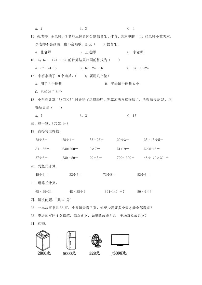 当前位置: 首页小学资源小学二年级正文 2021-2022学年浙江省杭州市淳安县小学二年级下册数学期末试题及答案(Word版)_共6页 小学二年级 1 周前 0 0 5 以上为部分内容预览,如需源文档请登录您的会员账号进行下载! 声明:本站所有文章,如无特殊说明或标注,均为本站原创发布。任何个人或组织,在未征得本站同意时,禁止复制、盗用、采集、发布本站内容到任何网站、书籍等各类媒体平台。如若本站内容侵犯了原著者的合法权益,可联系我们进行处理。 尚学资源永久会员 打赏 收藏 海报 链接