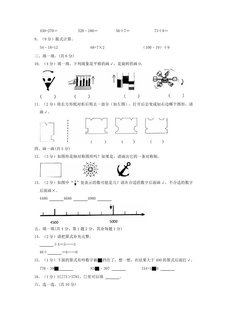 2021-2022学年浙江省杭州市余杭区小学二年级下册数学期末试题及答案(Word版)_共11页