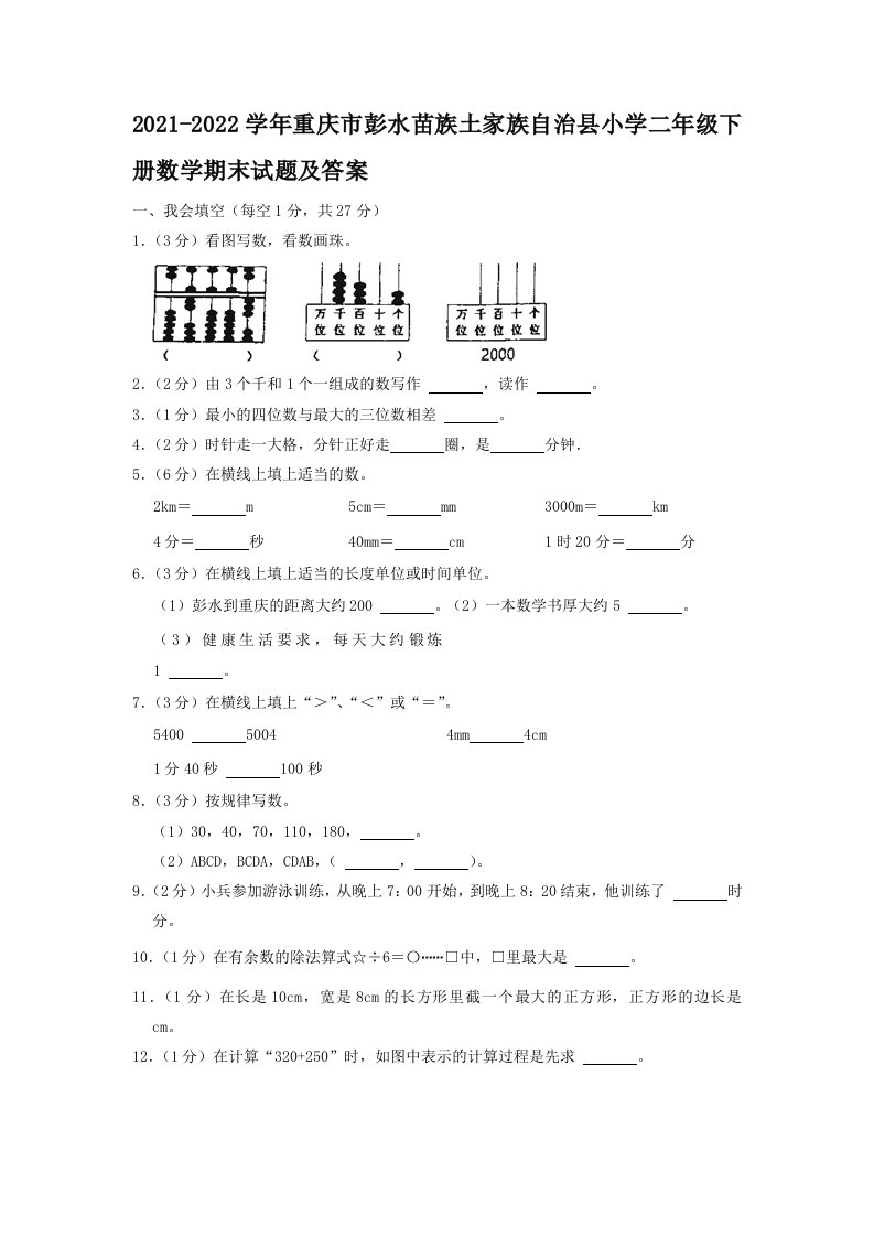 当前位置: 首页小学资源小学二年级正文 2021-2022学年重庆市彭水苗族土家族自治县小学二年级下册数学期末试题及答案(Word版)_共13页 小学二年级 1 周前 0 0 10 以上为部分内容预览,如需源文档请登录您的会员账号进行下载! 声明:本站所有文章,如无特殊说明或标注,均为本站原创发布。任何个人或组织,在未征得本站同意时,禁止复制、盗用、采集、发布本站内容到任何网站、书籍等各类媒体平台。如若本站内容侵犯了原著者的合法权益,可联系我们进行处理。 尚学资源永久会员 打赏 收藏 海报 链接