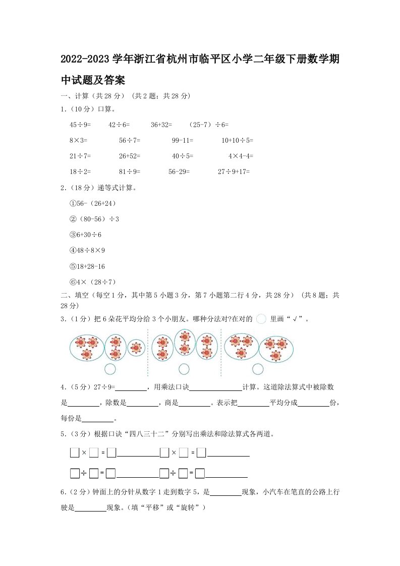 当前位置: 首页小学资源小学二年级正文 2022-2023学年浙江省杭州市临平区小学二年级下册数学期中试题及答案(Word版)_共9页 小学二年级 1 周前 0 0 5 以上为部分内容预览,如需源文档请登录您的会员账号进行下载! 声明:本站所有文章,如无特殊说明或标注,均为本站原创发布。任何个人或组织,在未征得本站同意时,禁止复制、盗用、采集、发布本站内容到任何网站、书籍等各类媒体平台。如若本站内容侵犯了原著者的合法权益,可联系我们进行处理。 尚学资源永久会员 打赏 收藏 海报 链接