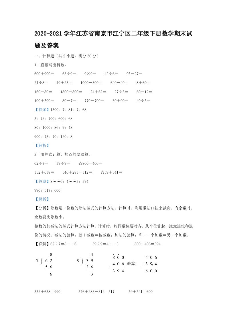 当前位置: 首页小学资源小学二年级正文 2020-2021学年江苏省南京市江宁区二年级下册数学期末试题及答案(Word版)_共17页 小学二年级 1 周前 0 0 10 以上为部分内容预览,如需源文档请登录您的会员账号进行下载! 声明:本站所有文章,如无特殊说明或标注,均为本站原创发布。任何个人或组织,在未征得本站同意时,禁止复制、盗用、采集、发布本站内容到任何网站、书籍等各类媒体平台。如若本站内容侵犯了原著者的合法权益,可联系我们进行处理。 尚学资源永久会员 打赏 收藏 海报 链接