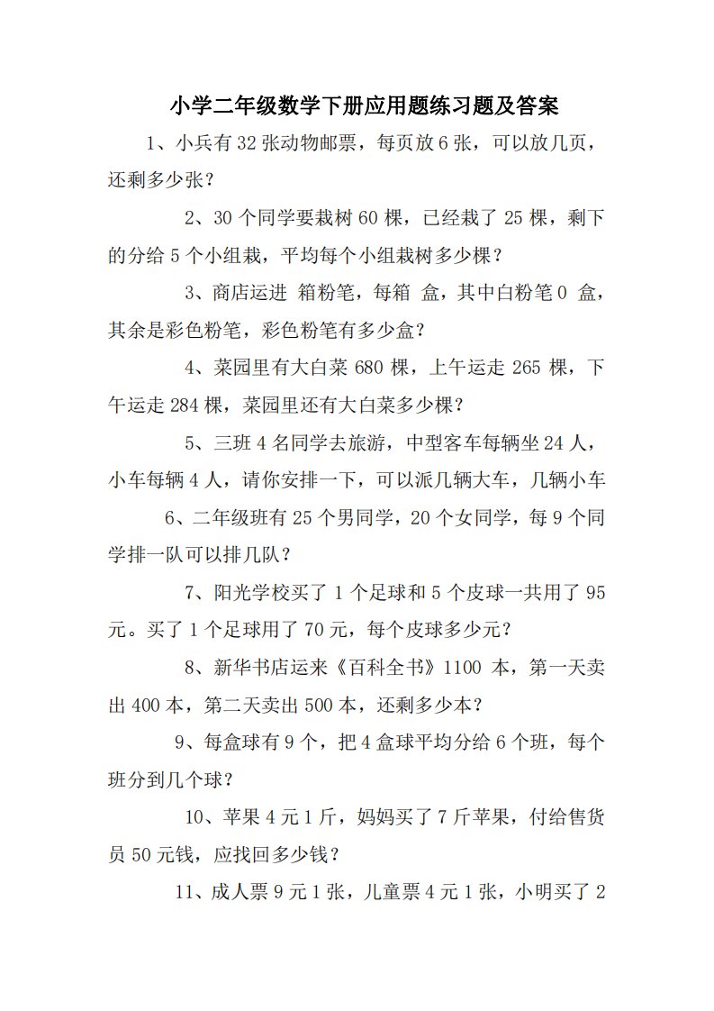 当前位置: 首页小学资源小学二年级正文 2年级数学应用题大全(无答案).doc_共13页 小学二年级 1 周前 0 0 10 以上为部分内容预览,如需源文档请登录您的会员账号进行下载! 声明:本站所有文章,如无特殊说明或标注,均为本站原创发布。任何个人或组织,在未征得本站同意时,禁止复制、盗用、采集、发布本站内容到任何网站、书籍等各类媒体平台。如若本站内容侵犯了原著者的合法权益,可联系我们进行处理。 尚学资源永久会员 打赏 收藏 海报 链接