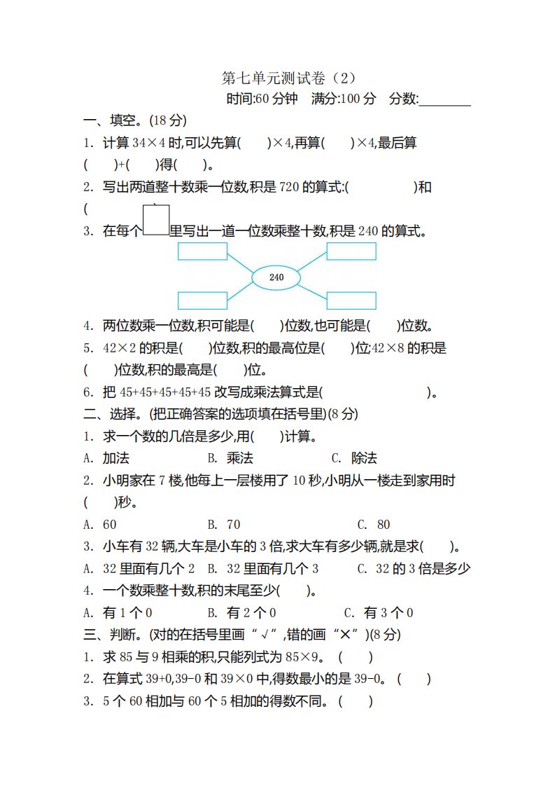 二(下)青岛版数学第七单元检测卷.2(54制)_共4页