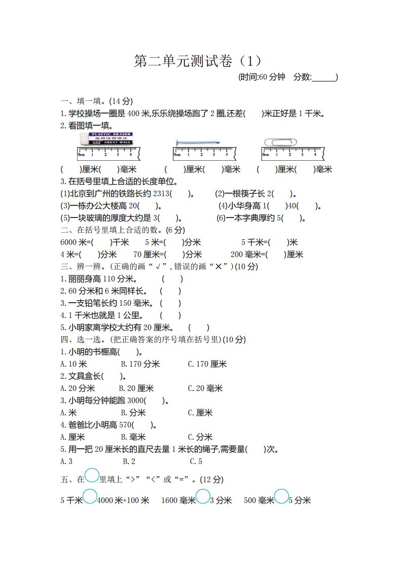 二(下)青岛版数学第二单元检测卷.1(54制)_共3页