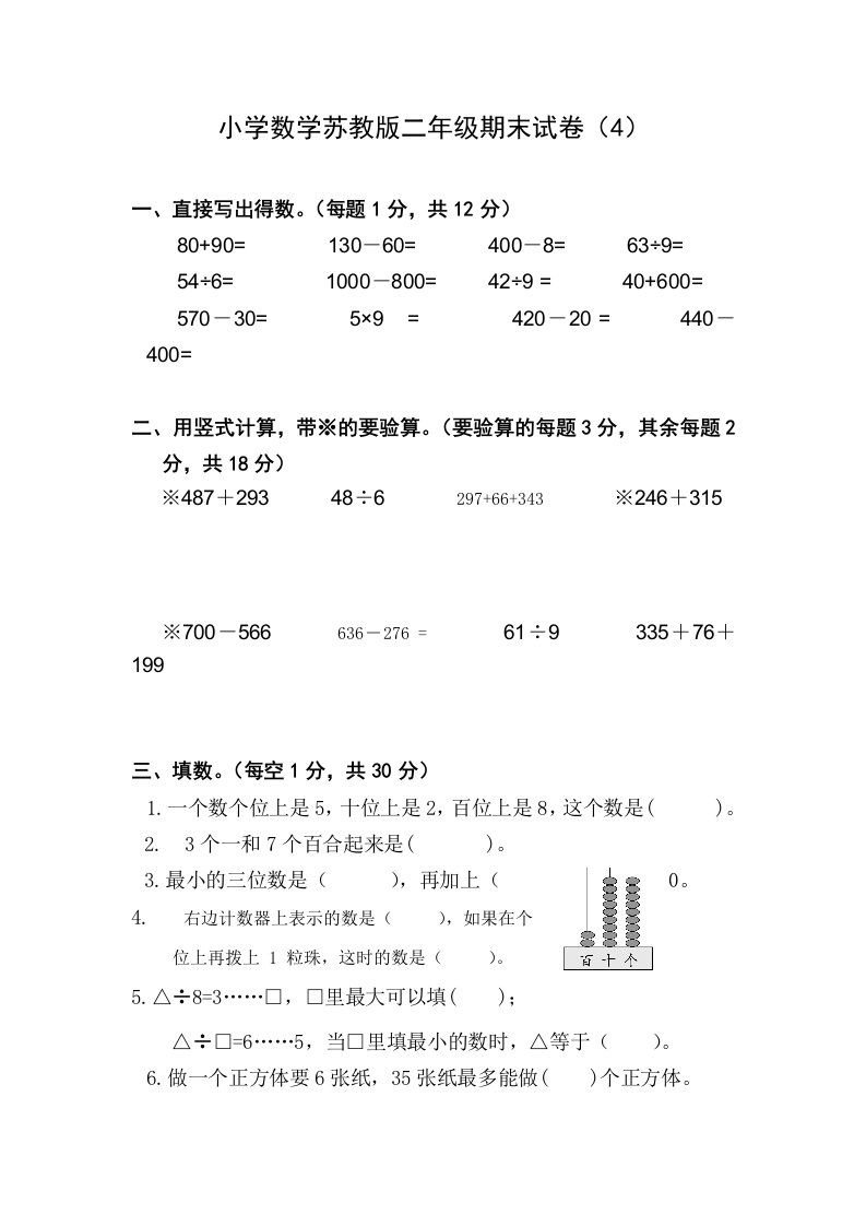 当前位置: 首页小学资源小学二年级正文 二年级数学下册苏教版下学期期末测试卷4_共8页 小学二年级 1 周前 0 0 5 以上为部分内容预览,如需源文档请登录您的会员账号进行下载! 声明:本站所有文章,如无特殊说明或标注,均为本站原创发布。任何个人或组织,在未征得本站同意时,禁止复制、盗用、采集、发布本站内容到任何网站、书籍等各类媒体平台。如若本站内容侵犯了原著者的合法权益,可联系我们进行处理。 尚学资源永久会员 打赏 收藏 海报 链接