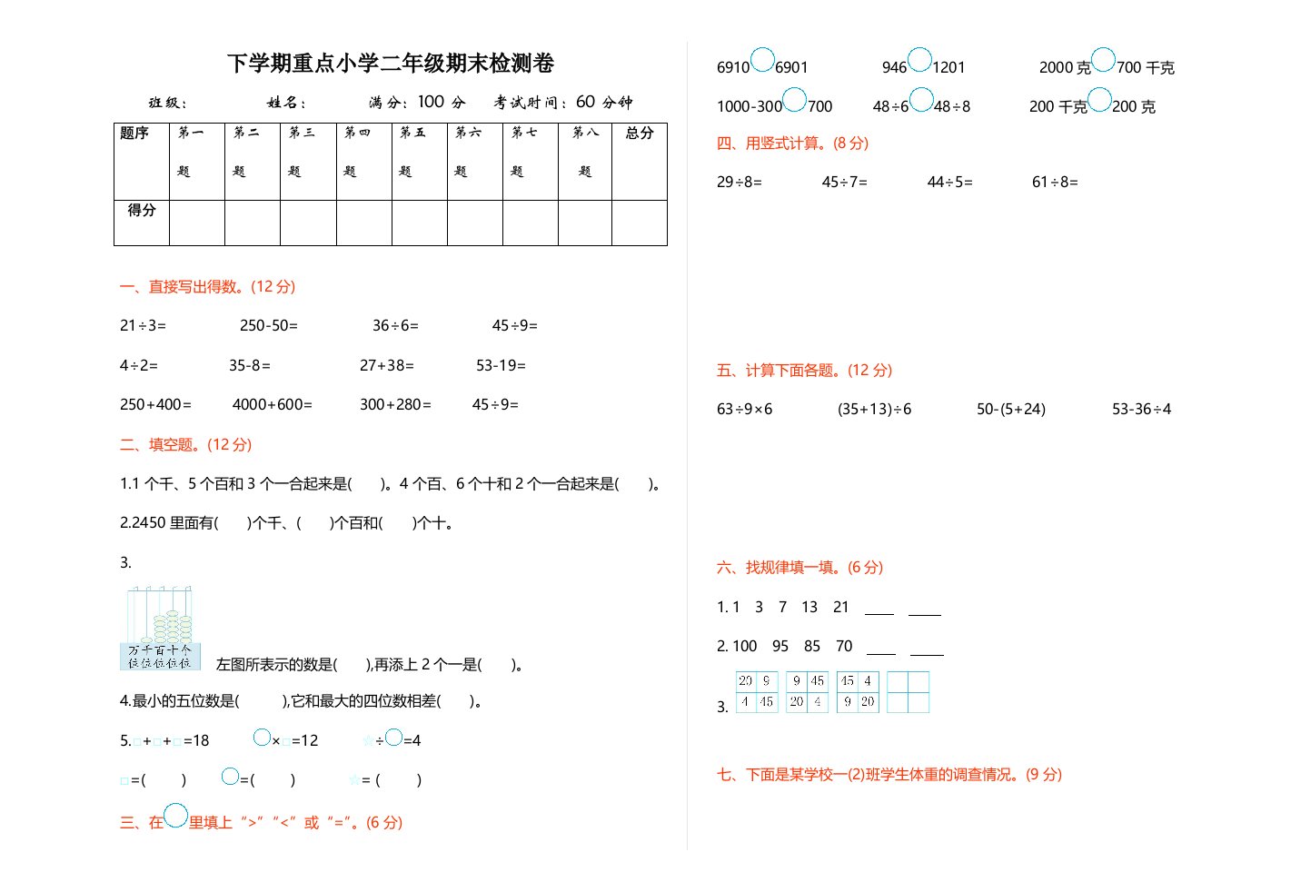 当前位置: 首页小学资源小学二年级正文 二年级数学下册期末检测卷1(人教版)_共3页 小学二年级 1 周前 0 0 5 以上为部分内容预览,如需源文档请登录您的会员账号进行下载! 声明:本站所有文章,如无特殊说明或标注,均为本站原创发布。任何个人或组织,在未征得本站同意时,禁止复制、盗用、采集、发布本站内容到任何网站、书籍等各类媒体平台。如若本站内容侵犯了原著者的合法权益,可联系我们进行处理。 尚学资源永久会员 打赏 收藏 海报 链接