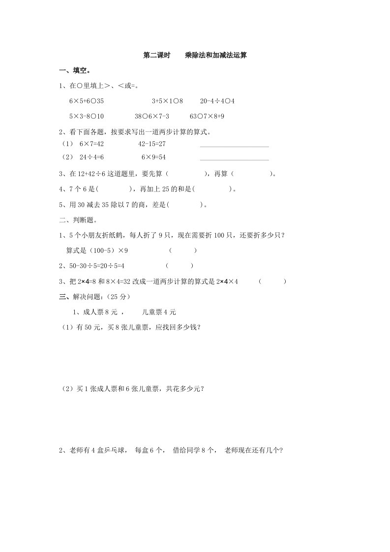 二年级数学下册5.2乘除法和加减法运算_共2页