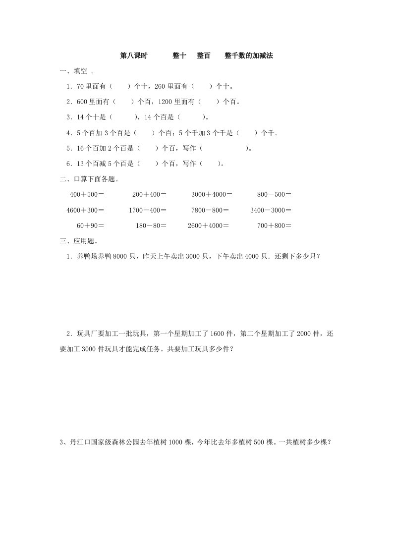 二年级数学下册7.8整十整百整千数的加减法_共2页