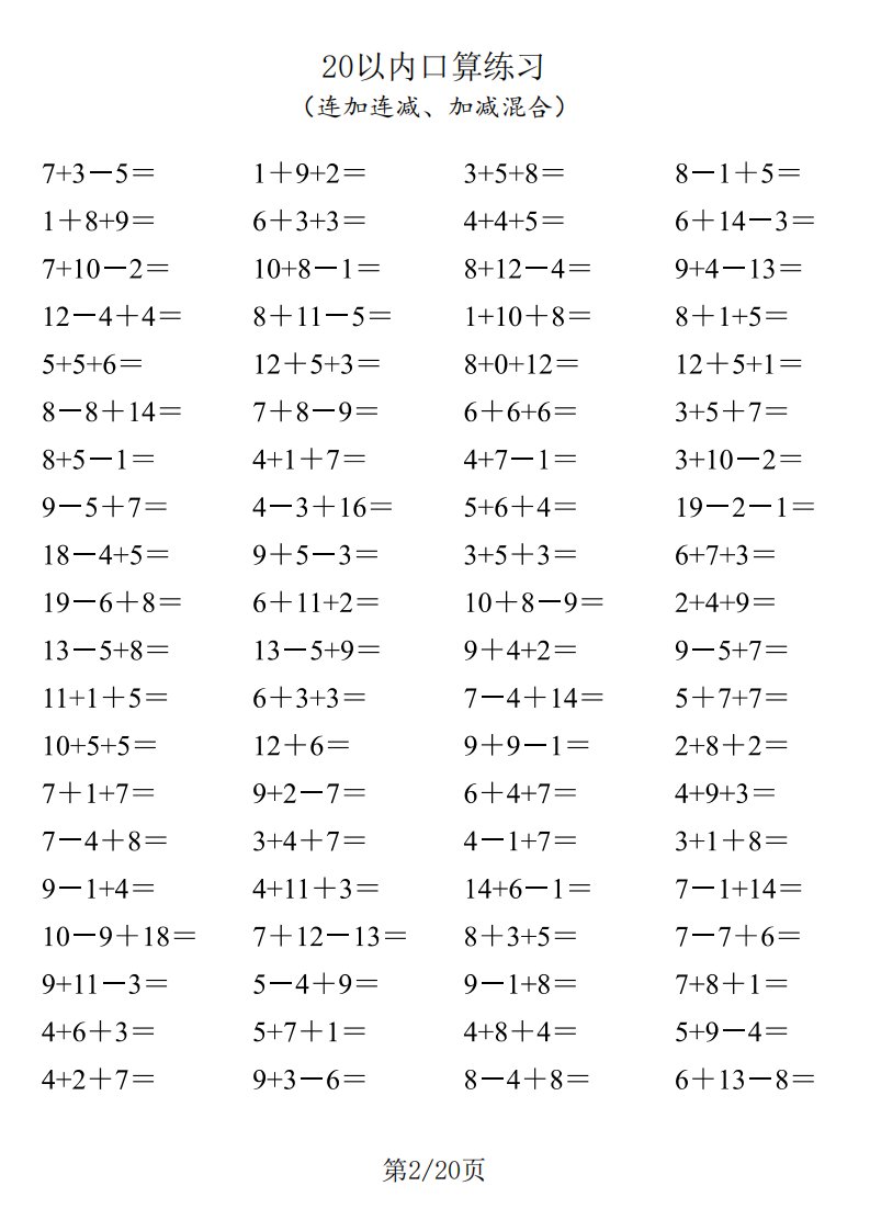一年级数学上册20以内口算_共20页