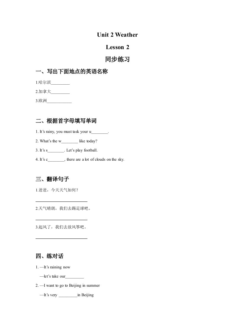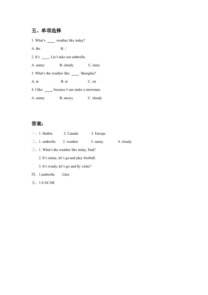 当前位置: 首页小学资源小学二年级正文 二年级英语下册Unit2WeatherLesson2同步练习3(人教版)_共2页 小学二年级 1 周前 0 0 5 以上为部分内容预览,如需源文档请登录您的会员账号进行下载! 声明:本站所有文章,如无特殊说明或标注,均为本站原创发布。任何个人或组织,在未征得本站同意时,禁止复制、盗用、采集、发布本站内容到任何网站、书籍等各类媒体平台。如若本站内容侵犯了原著者的合法权益,可联系我们进行处理。 尚学资源永久会员 打赏 收藏 海报 链接