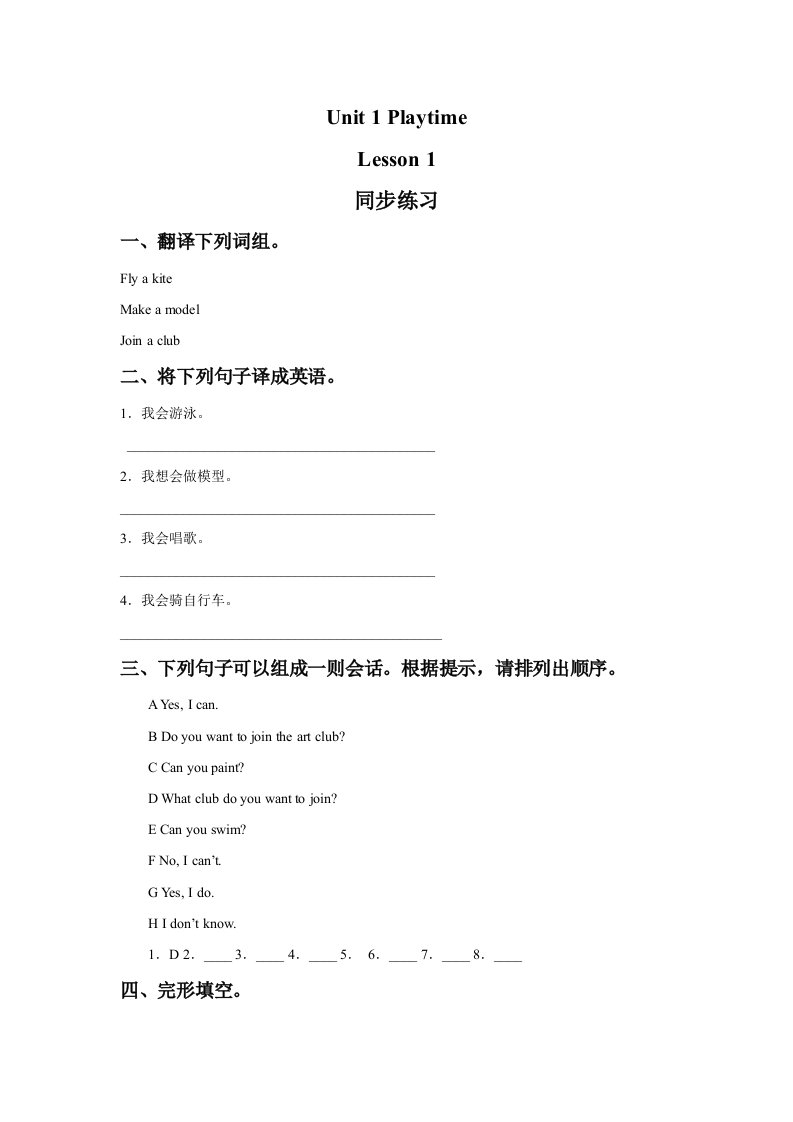 二年级英语下册Unit1PlaytimeLesson1同步练习1(人教版)_共2页