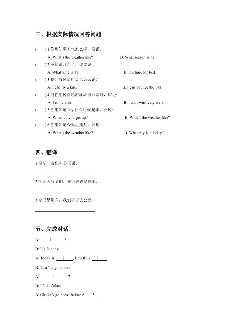 二年级英语下册Unit6MyWeekLesson2同步练习3(人教版)_共3页