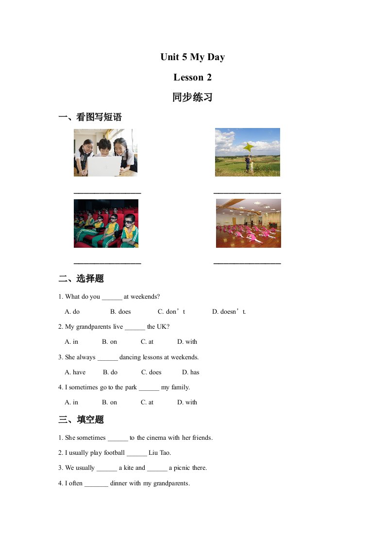 二年级英语下册Unit5MyDayLesson2同步练习2(人教版)_共2页