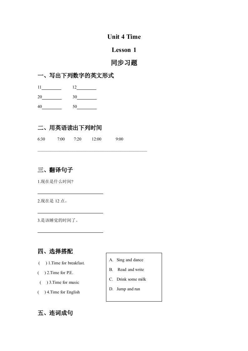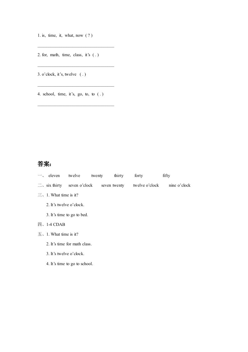 二年级英语下册Unit4TimeLesson1同步练习3(人教版)_共2页