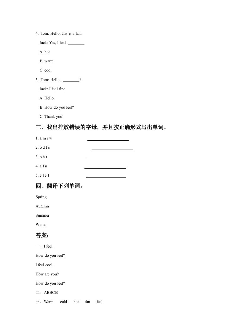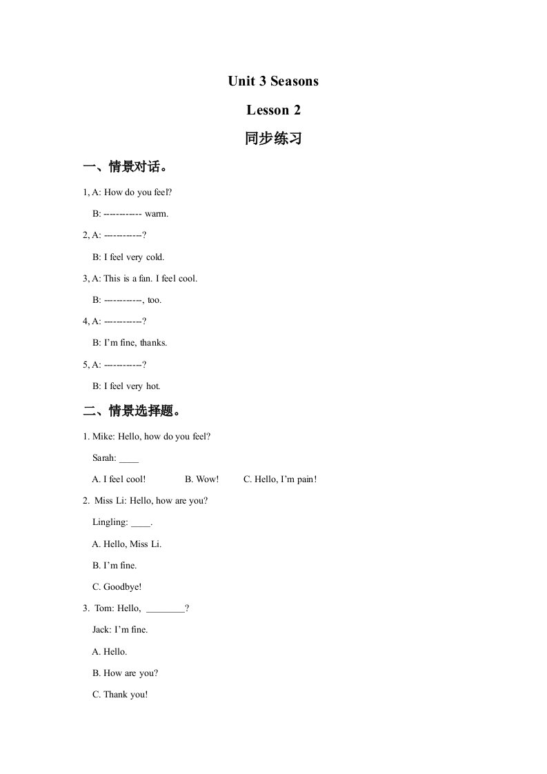 二年级英语下册Unit3SeasonsLesson2同步练习2(人教版)_共3页