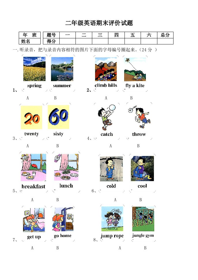 当前位置: 首页小学资源小学二年级正文 二年级英语下册期末测试(3)(人教版)_共4页 小学二年级 1 周前 0 0 5 以上为部分内容预览,如需源文档请登录您的会员账号进行下载! 声明:本站所有文章,如无特殊说明或标注,均为本站原创发布。任何个人或组织,在未征得本站同意时,禁止复制、盗用、采集、发布本站内容到任何网站、书籍等各类媒体平台。如若本站内容侵犯了原著者的合法权益,可联系我们进行处理。 尚学资源永久会员 打赏 收藏 海报 链接