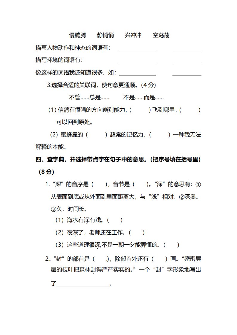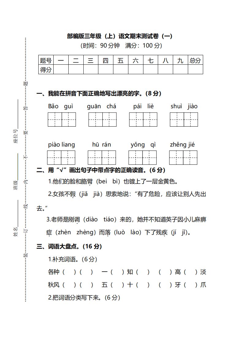 部编版三年级上语文期末测试卷(一)及答案_共6页