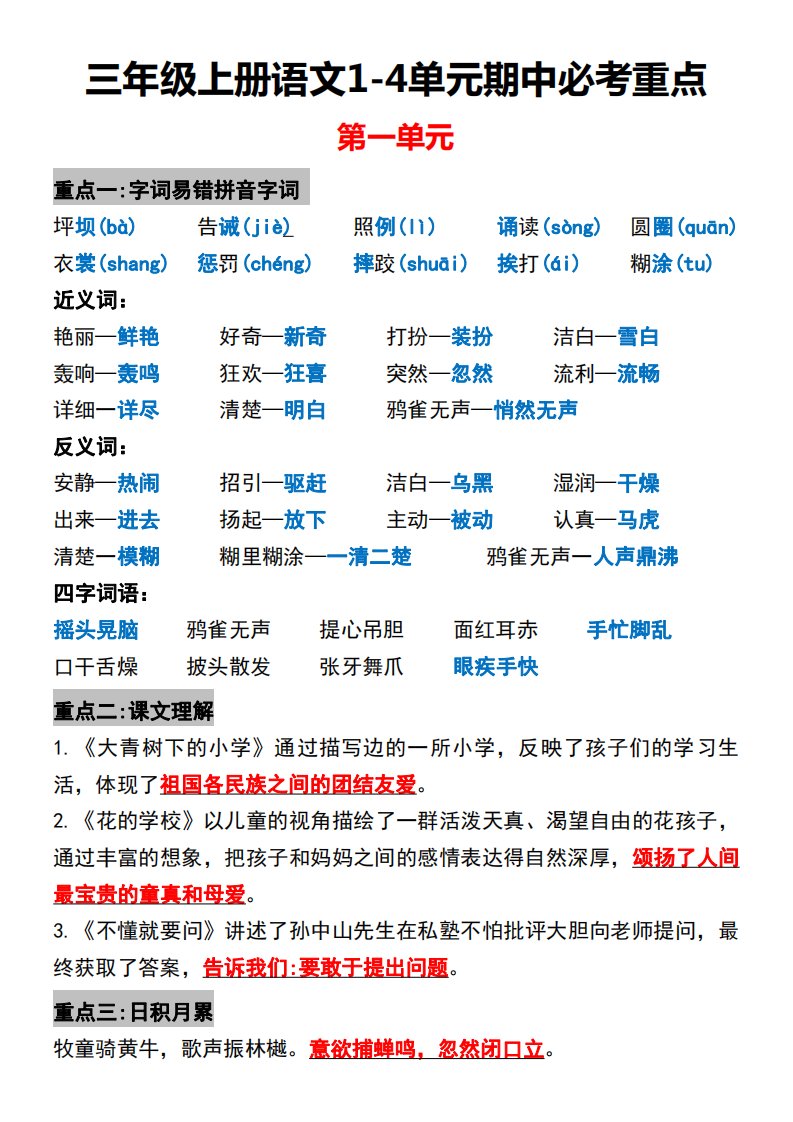 当前位置: 首页小学资源小学三年级正文 三年级上册语文1-4单元期中必考重点_共4页 小学三年级 1 周前 0 0 5 以上为部分内容预览,如需源文档请登录您的会员账号进行下载! 声明:本站所有文章,如无特殊说明或标注,均为本站原创发布。任何个人或组织,在未征得本站同意时,禁止复制、盗用、采集、发布本站内容到任何网站、书籍等各类媒体平台。如若本站内容侵犯了原著者的合法权益,可联系我们进行处理。 尚学资源永久会员 打赏 收藏 海报 链接