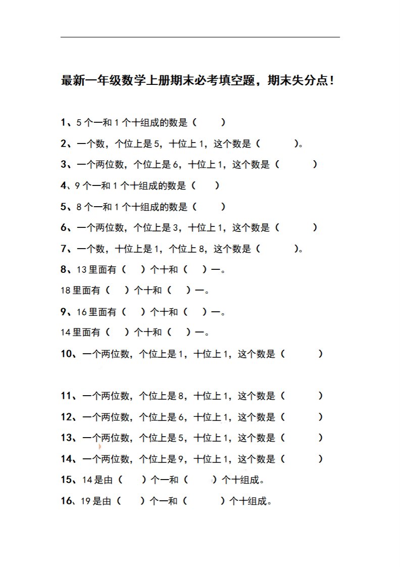 当前位置: 首页小学资源小学一年级正文 一上数学期末必考填空题,期末失分点!_共4页 小学一年级 2 周前 0 0 5 以上为部分内容预览,如需源文档请登录您的会员账号进行下载! 声明:本站所有文章,如无特殊说明或标注,均为本站原创发布。任何个人或组织,在未征得本站同意时,禁止复制、盗用、采集、发布本站内容到任何网站、书籍等各类媒体平台。如若本站内容侵犯了原著者的合法权益,可联系我们进行处理。 尚学资源永久会员 打赏 收藏 海报 链接
