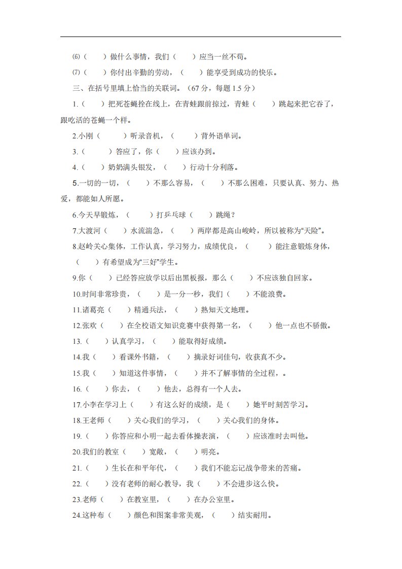 当前位置: 首页小学资源小学三年级正文 三上语文-关联词专项练习(无答案)_共3页 小学三年级 1 周前 0 0 5 以上为部分内容预览,如需源文档请登录您的会员账号进行下载! 声明:本站所有文章,如无特殊说明或标注,均为本站原创发布。任何个人或组织,在未征得本站同意时,禁止复制、盗用、采集、发布本站内容到任何网站、书籍等各类媒体平台。如若本站内容侵犯了原著者的合法权益,可联系我们进行处理。 尚学资源永久会员 打赏 收藏 海报 链接