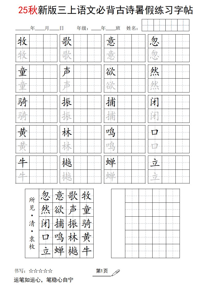 当前位置: 首页小学资源小学三年级正文 三上语文25新暑假五言古诗练习字帖_共3页 小学三年级 1 周前 0 0 5 以上为部分内容预览,如需源文档请登录您的会员账号进行下载! 声明:本站所有文章,如无特殊说明或标注,均为本站原创发布。任何个人或组织,在未征得本站同意时,禁止复制、盗用、采集、发布本站内容到任何网站、书籍等各类媒体平台。如若本站内容侵犯了原著者的合法权益,可联系我们进行处理。 尚学资源永久会员 打赏 收藏 海报 链接