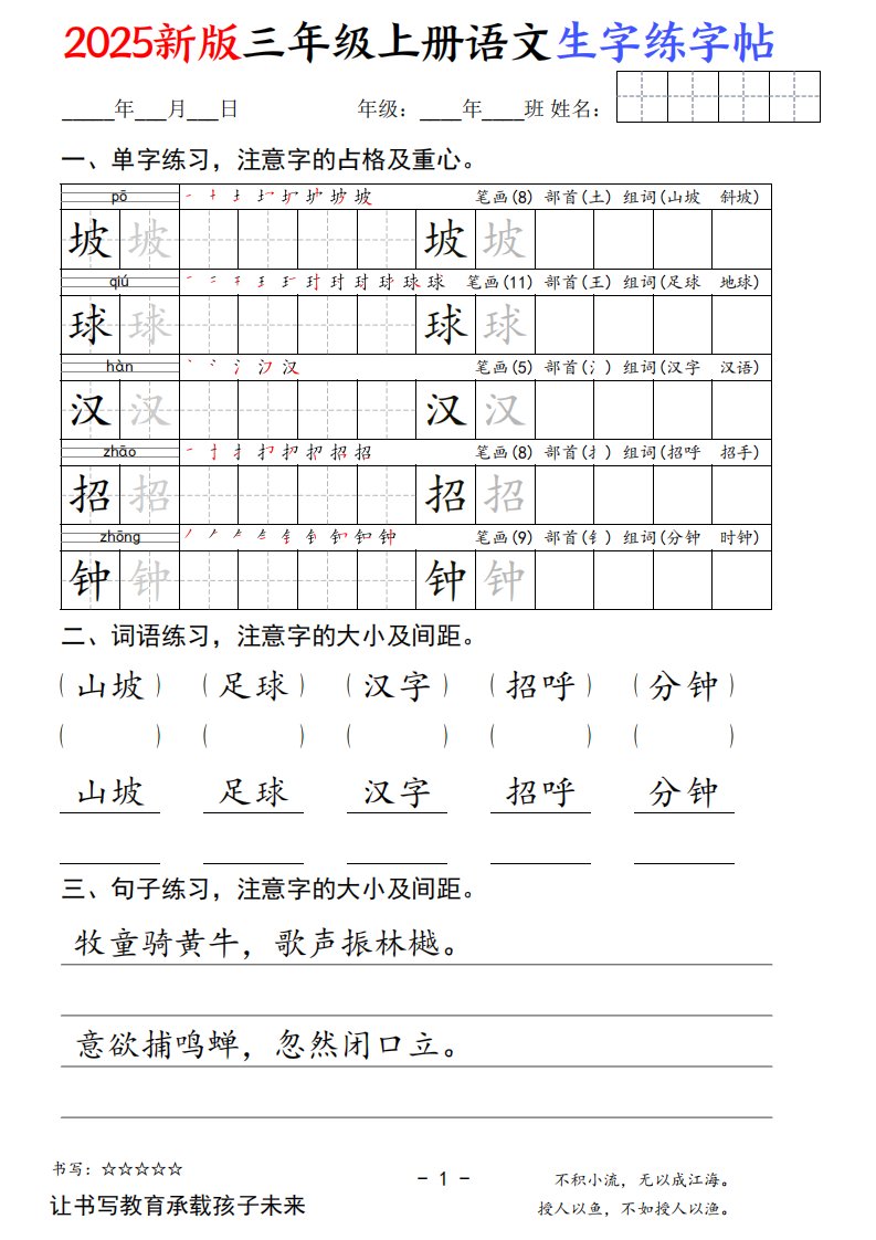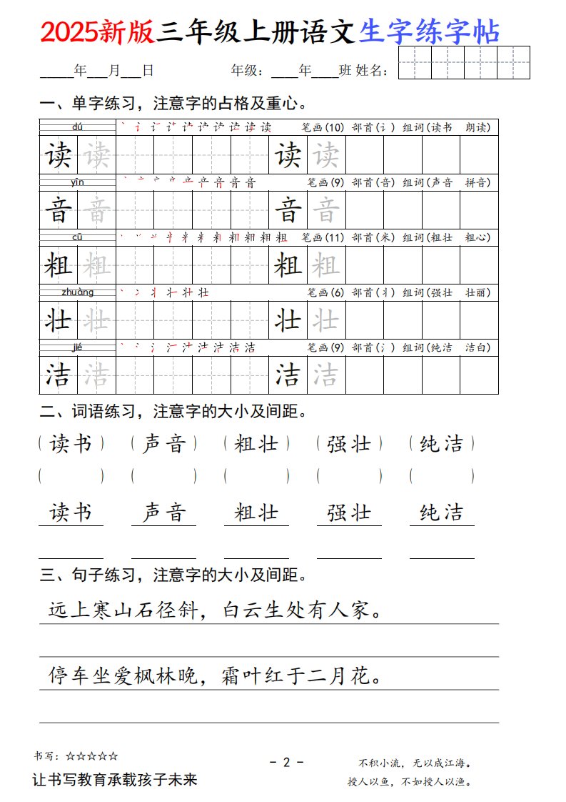 当前位置: 首页小学资源小学三年级正文 2025新版三年级上册语文生字练字帖(卷面书写练字帖)50页_共50页 小学三年级 1 周前 0 0 15 以上为部分内容预览,如需源文档请登录您的会员账号进行下载! 声明:本站所有文章,如无特殊说明或标注,均为本站原创发布。任何个人或组织,在未征得本站同意时,禁止复制、盗用、采集、发布本站内容到任何网站、书籍等各类媒体平台。如若本站内容侵犯了原著者的合法权益,可联系我们进行处理。 尚学资源永久会员 打赏 收藏 海报 链接