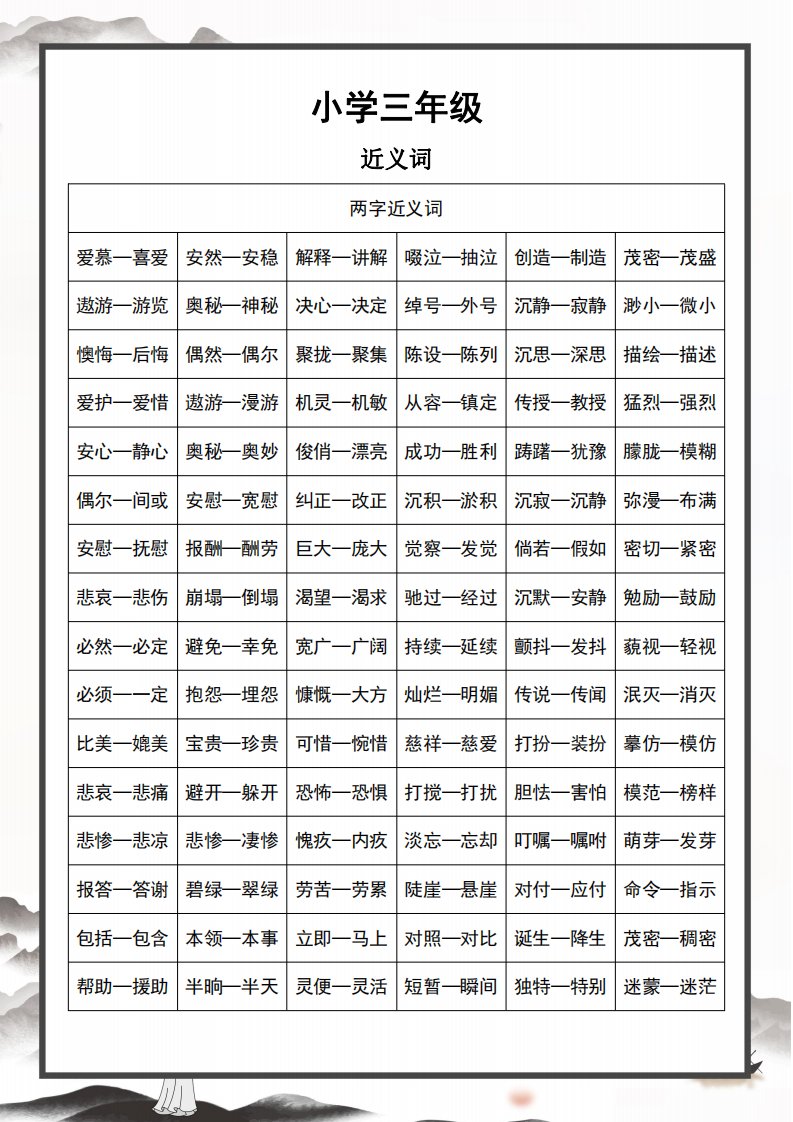 当前位置: 首页小学资源小学三年级正文 三上语文近义词和反义词汇总_共8页 小学三年级 1 周前 0 0 5 以上为部分内容预览,如需源文档请登录您的会员账号进行下载! 声明:本站所有文章,如无特殊说明或标注,均为本站原创发布。任何个人或组织,在未征得本站同意时,禁止复制、盗用、采集、发布本站内容到任何网站、书籍等各类媒体平台。如若本站内容侵犯了原著者的合法权益,可联系我们进行处理。 尚学资源永久会员 打赏 收藏 海报 链接