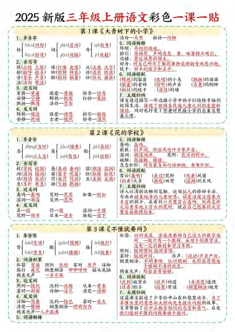 当前位置: 首页小学资源小学三年级正文 【25秋新版】三年级上语文彩色一课一贴_共9页 小学三年级 1 周前 0 0 5 以上为部分内容预览,如需源文档请登录您的会员账号进行下载! 声明:本站所有文章,如无特殊说明或标注,均为本站原创发布。任何个人或组织,在未征得本站同意时,禁止复制、盗用、采集、发布本站内容到任何网站、书籍等各类媒体平台。如若本站内容侵犯了原著者的合法权益,可联系我们进行处理。 尚学资源永久会员 打赏 收藏 海报 链接
