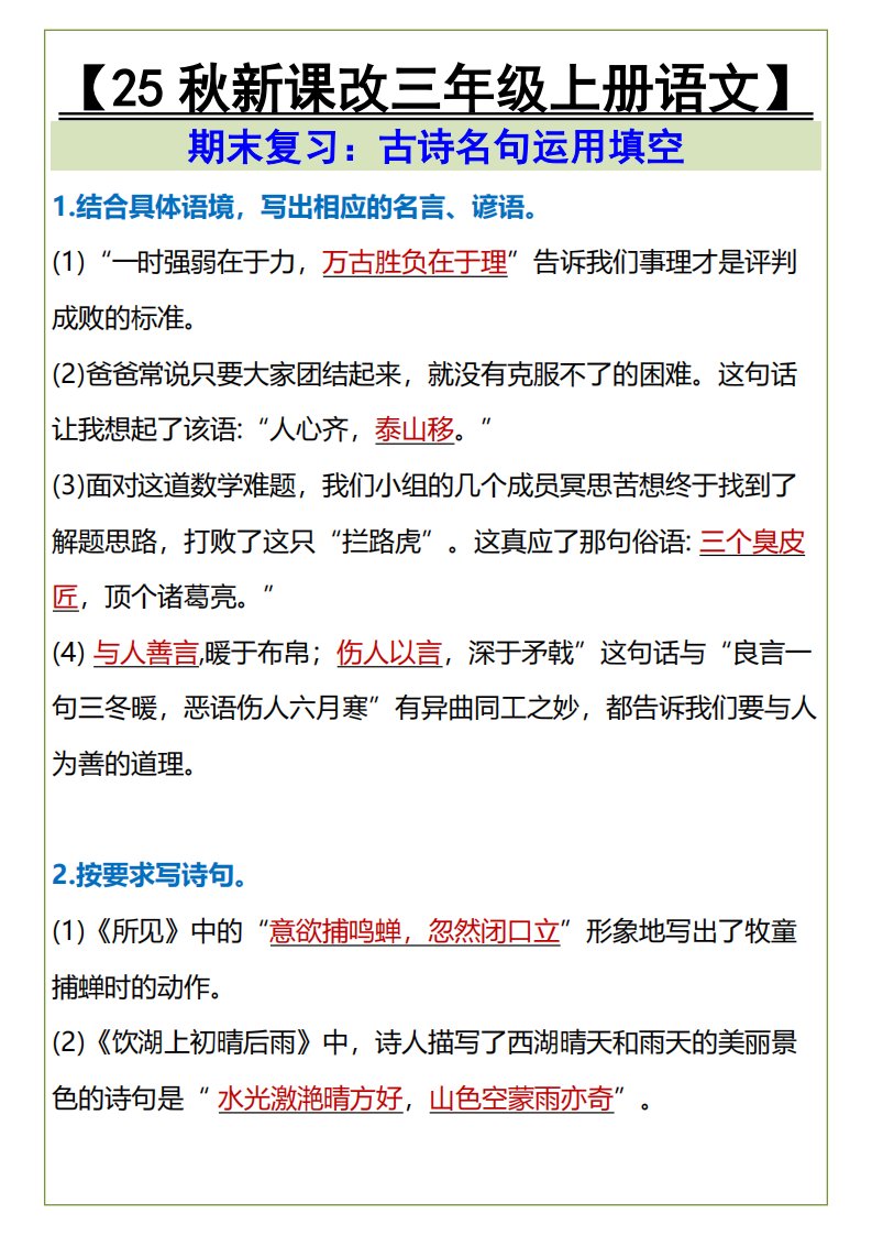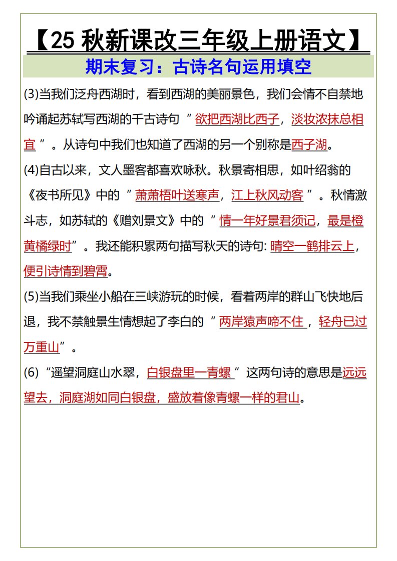 当前位置: 首页小学资源小学三年级正文 【2025秋新版】三年级上册语文古诗名句运用填空_共2页 小学三年级 1 周前 0 0 5 以上为部分内容预览,如需源文档请登录您的会员账号进行下载! 声明:本站所有文章,如无特殊说明或标注,均为本站原创发布。任何个人或组织,在未征得本站同意时,禁止复制、盗用、采集、发布本站内容到任何网站、书籍等各类媒体平台。如若本站内容侵犯了原著者的合法权益,可联系我们进行处理。 尚学资源永久会员 打赏 收藏 海报 链接