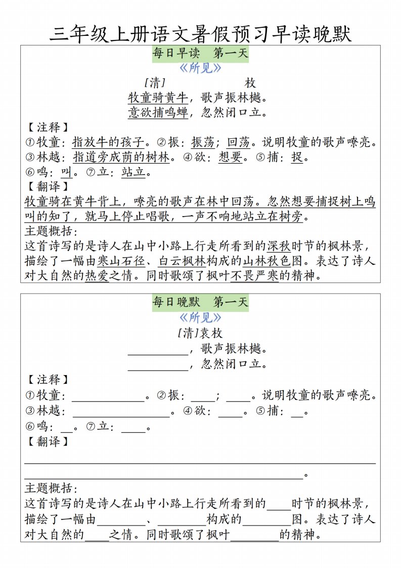 当前位置: 首页小学资源小学三年级正文 三上语文必背内容早读晚默_共17页 小学三年级 1 周前 0 0 10 以上为部分内容预览,如需源文档请登录您的会员账号进行下载! 声明:本站所有文章,如无特殊说明或标注,均为本站原创发布。任何个人或组织,在未征得本站同意时,禁止复制、盗用、采集、发布本站内容到任何网站、书籍等各类媒体平台。如若本站内容侵犯了原著者的合法权益,可联系我们进行处理。 尚学资源永久会员 打赏 收藏 海报 链接